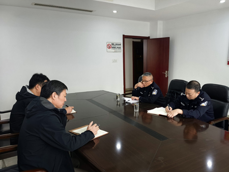 会议中,盐都区公安局治安警察大队警官高迎华与盐城市神龙汽车出租有限公司总经理孙治国就服务队组建细节达成共识。